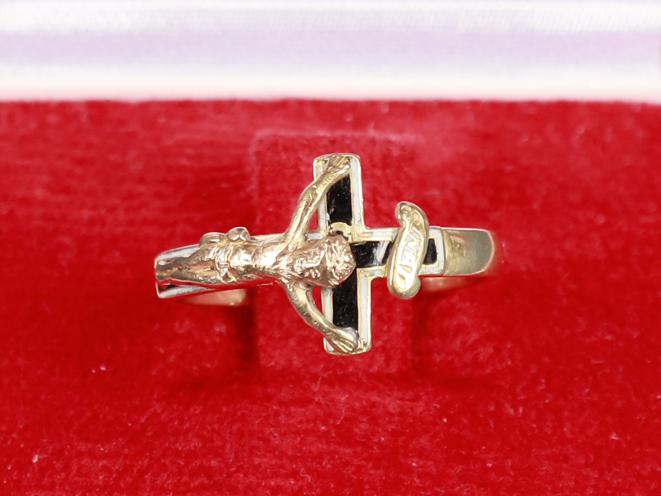 A ring from the era of Biedermeier. It has inside the ring engraved: "2 Mai 1850". Rings from the 19th century with a cross are very rare in the antiquarian trade.